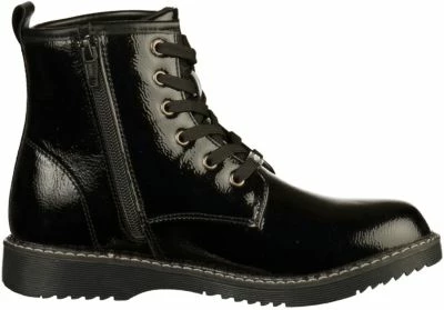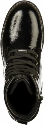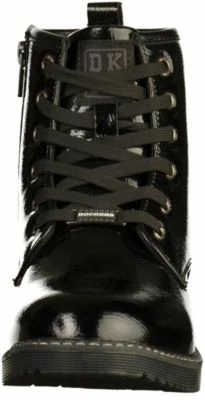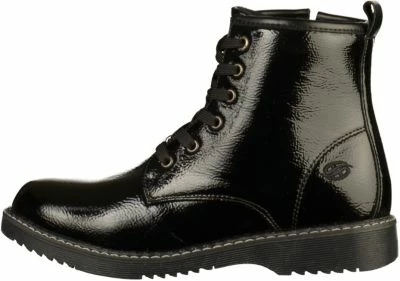 Dockers zeigt eine modische Schnürstiefelette in angesagter Lack-Optik. Der zusätzliche Reißverschluss an der Seitenpartie ermöglicht bequemen Ein- und Ausstieg.
