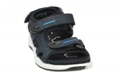 Hersteller: Ecco Hersteller Art-Nr.: 71064202303 Modellname: X-TRINSIC – Kids Machart: Kinderschuhe Jungen, Sandalen Farbe: dunkelblau + schwarz + weiß (night sky) Obermaterial: Echtleder – Velour – Rauhleder Innenfutter: Textil – weich gepolstert Innensohle: Textil Fußbett Wechselfußbett: nicht herausnehmbare Innensohle Laufsohle: Gummisohle Verschluss: Klettverschluss Absatzart: flach – kein Absatz Schuhform: rund Größenhinweis: fällt normal aus Weitenangabe: G – normal Weite