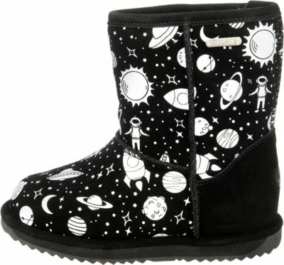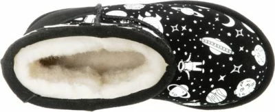 Ob in der Freizeit oder auf dem Weg zur Schule: Die Winterstiefel von EMU Australia sind immer mit dabei. Das Obermaterial begeistert durch das echte Veloursleder. Das sehr warme, atmungsaktive Futter aus Schurwolle unterstützt ein angenehmes Klima im Schuh. Es handelt sich um ein Modell zum flinken Hineinschlüpfen. Dank des wasserdichten Obermaterials ist dieses Paar ein sehr guter Begleiter auch an Regentagen.