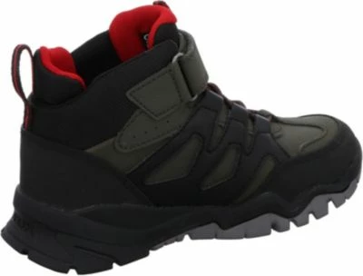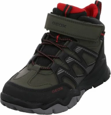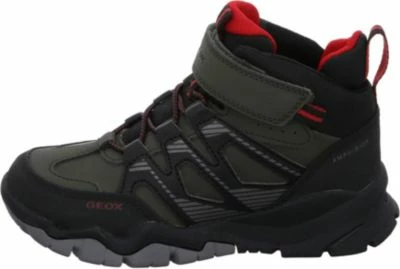Hervorragenden Schutz und optimale Wärmeregulierung bei allen Wetterbedingungen verspricht dieser Sneaker von Geox mit Amphibiox-Technologie. Obermaterial und Sohle sind hier mit wasserdichten Eigenschaften ausgestattet. Einen Kälteschutz erhält man dank thermischer Isolierung. Der Einzelklettverschluss und die elastischen Schnürbänder erleichtern das An- und Ausziehen und ermöglichen die stufenlose Fußanpassung. Der Montrack ABX überzeugt in Military-Green und Schwarz mit seinem am Outdoorstil inspirierten Design.