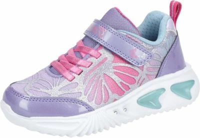 Hersteller: Geox Hersteller Art-Nr.: J25E9B 0ASKN C8X3B Modellname: ASSISTER GIRL Machart: Kinderschuhe Mädchen, Klett Halbschuhe Farbe: lila + rosa + hellblau + silber Glitzer (lt violet/watersea) Obermaterial: Textil / Mesh + Synthetik (SH.TE, SY.PAT) Innenfutter: Textil / Mesh – atmungsaktiv Innensohle: Textil – atmungsaktiv Wechselfußbett: Ja – herausnehmbare Innensohle Laufsohle: Polyurethan (PU) – extra leicht und flexibel – GEOX ATMET, on/off Blinker LED Verschluss: Klettverschluss, elastische Bänder Absatzart: flach – kein Absatz Schuhform: rund Größenhinweis: fällt normal aus Weitenangabe: G – normal Weite
