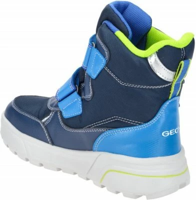 Hersteller: Geox Hersteller Art-Nr.: J267UC 0FUFE C0693 Modellname: SVEGGEN BOY ABX Machart: Kinderschuhe Jungen, Klett Winter Stiefel Farbe: blau + hellblau + grau + neon gelb (navy / light blue) Obermaterial: Textil / Mesh + Synthetik (AMPHIBIOX = wasserdicht) Innenfutter: Warmfutter Innensohle: Textil Fußbett Wechselfußbett: Ja – herausnehmbare Innensohle Laufsohle: Polyurethan (PU) – extra leicht und flexibel – GEOX ATMET Verschluss: Klettverschluss Absatzart: flach – kein Absatz Schafthöhe: Knöchelhoch Schuhform: rund Größenhinweis: fällt normal aus Weitenangabe: G – normal Weite