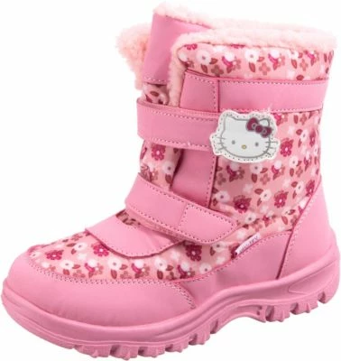 Diese Winterstiefel beeindrucken mit tollem Hello Kitty-Design. Das Obermaterial zeigt sich als gelungener Materialmix aus Kunstleder und Textil. Ein schnelles An- und Ausziehen ist durch den Klettverschluss ein Leichtes. Damit die Füße stets trocken sind, zeigen sich diese Schuhe mit einer wasserdichten Oberfläche. Das Modell ist wärmend gefüttert.