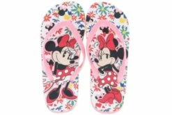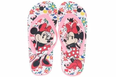 Der verspielte Sommerschuh für Mädchen sorgt mit der bunten Decksohle mit Blümchen und der bekannten Minnie Mouse für Aufsehen. Die weichen Riemen des Zehentrenners sind flexibel und passen sich der Form des Fußes ideal an. Durch die weiche Sohle und das geringe Gewicht des Schuhes ist dieser Zehentrenner der perfekte Begleiter für den Ausflug ins Schwimmbad, den Urlaub am Strand oder einem Ausflug zum See.