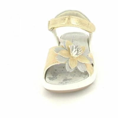 – niedliche Mädchen Sandale in gold von Lurchi – mit dekorativer Blumen-Applikation – beste Anpassung an den Fuß durch die Klettverschlüsse – äußerst biegsame und superleichte Laufsohle – hoher Tragekomfort durch das weich gepolsterte Fußbett – WMS- Weite „M“