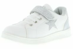 Der Look der Sneaker wird vor allem durch die schlichte Farbe, die auffallenden und glitzernden Akzente am Spann, der Außenseite und der Rückseite der Schuhe geprägt. Durch den angebrachten Klettverschluss und die zusätzliche Bungee-Schnürung ist ein guter Halt der Schuhe garantiert. Die weiche Innensohle und die profilierte Laufsohle aus Gummi versprechen ein angenehmes und tolles Tragegefühl.