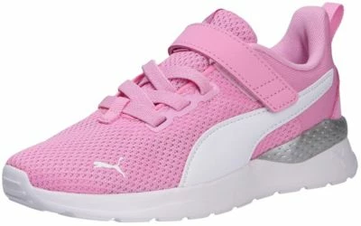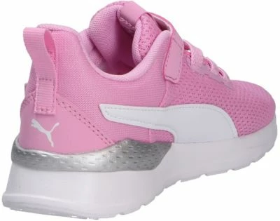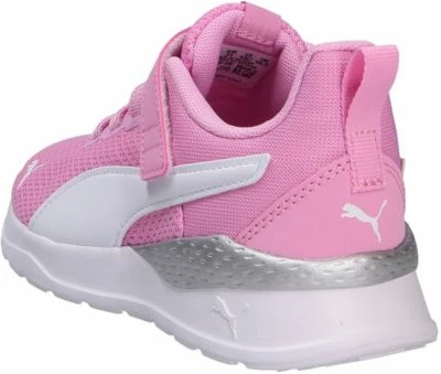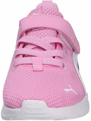 Schöner Halbschuh für Mädchen der Marke Puma aus einem hochwertigen Textil. Auch die textile Innenverarbeitung überzeugt durch ihre angenehm weiche Beschaffenheit. Durch die auswechselbare Decksohle ist es möglich, eigene Einlagen zu verwenden. Geschnitten ist die Form für normal breite Füße (Weite F). Der Absatz ist durchgehend flach ,die aus einem weichen PU-Material bestehende Laufsohle schont die Gelenke und federt jeden Tritt optimal ab. Ein Klettverschluß zum einfachen und bequemen an- und ausziehen sorgt für einen guten Halt.Ebenfalls ist eine stufenlose Anpassung an den Fuß möglich. Durch die runde Schuhspitze wirkt der Schuh dezent am Fuß und bietet genügend Platz für die Fußzehen. Die Schuhgröße fällt klein aus – bitte eine ganze Größe größer bestellen.