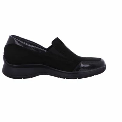 Damen Slipper von Semler aus einem feinen hochwertigem Veloursleder. Innen ist der Schuh mit einem cromfrei gegerbtem Leder ausgestattet. Der Schuh hat eine normale Weite. Der Absatz ist durchgehend flach. Die Laufsohle ist aus Gummi. Die Schuhgröße fällt regulär aus.