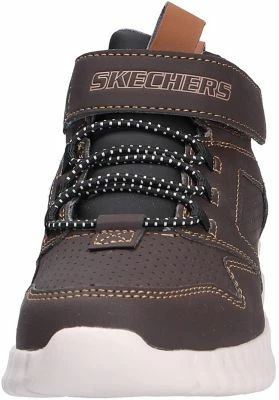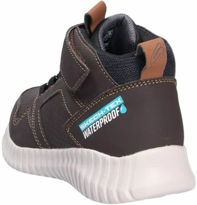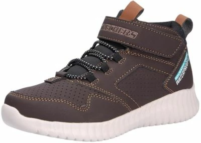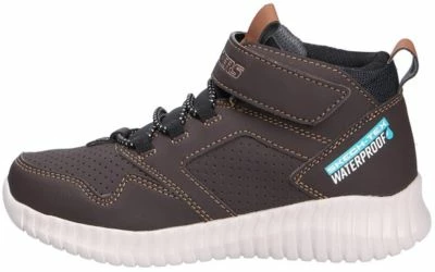Flotter Jungen Halbschuh der Marke Skechers aus einem feinen hochwertigem Synthetikmaterial. Innen ist der Schuh mit einem elastischen sowie atmungsaktiven Textil augestattet. Die weich gepolsterte textile Einlegesohle ist auswechselbar und schafft somit Platz für eigene Einlagen. Die Schuhform ist ideal für normal weite Füße (Weite F). Der Absatz ist durchgehend flach ,besonders strapazierfähig und haltbar ist die weiche PU-Sohle.Gerade bei Kinderschuhen hat sich diese Sohlenart aufgrund Ihrer Fexibilität und Stabilität bewiesen. Ein Klettverschluß zum einfachen und bequemen an- und ausziehen sorgt für einen guten Halt.Ebenfalls ist eine stufenlose Anpassung an den Fuß möglich. Für eine gesunde Entwicklung des Kinderfußes bietet die runde Schuhspitze genügend Platz für den Vorfuß und die Fußzehen. Die Schuhgröße fällt regulär aus. Eine wasserabweisende WATERPROOF Membrane sorgt für einen zuverlässigen Wetterschutz.