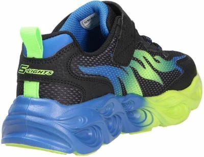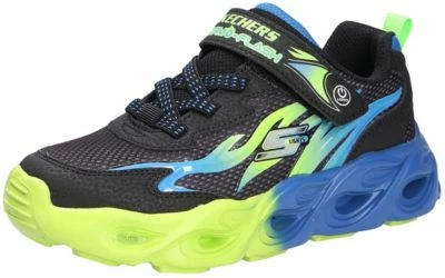 Flotter Jungen Halbschuh von Skechers aus einem feinen hochwertigem Synthetikmaterial. Innen ist der Schuh mit einem elastischen sowie atmungsaktiven Textil augestattet. Die weich gepolsterte textile Einlegesohle ist auswechselbar und schafft somit Platz für eigene Einlagen. Die Schuhform wurde nach dem WMS-Weitensystem entwickelt und hat die WMS-Weite M.Dies garaniert optimale Passfom für die „kleinen“ Füße. Der Absatz ist durchgehend flach ,die aus einem weichen PU-Material bestehende Laufsohle schont die Gelenke und federt jeden Tritt optimal ab. Klettverschlüsse halten den Schuh sicher am Fuß und sorgen auch für die individuelle und optimale Anpassung. Die karree-förmige Schuhform hat zwei Vorteile: Sie wirkt sportlich und bietet einen angenehmen Tragecomfort für den Fuß und die Fußzehen. Die Schuhgröße fällt regulär aus.