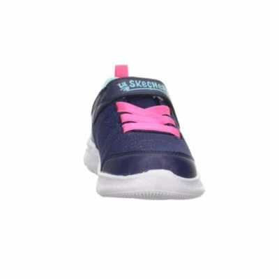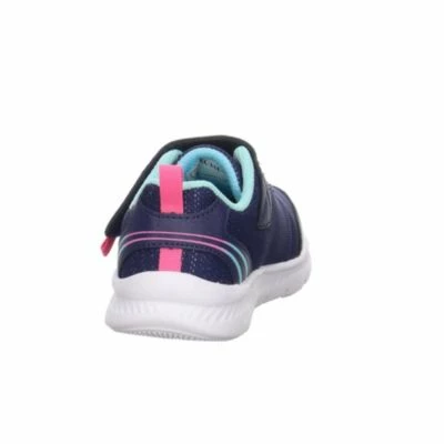 Dank Klettverschluss und elastischer Senkel bietet der Happy Stride von Skechers einen leichten Einstieg und optimalen Sitz. Dunkles Blau in Kombination mit Pink und leichte Glitzereffekte geben den Schuhen ihren schönen Look der auch bei kleinen Mädchen gut ankommt. Der Schuh ist federleicht und kann auf Wunsch nach Anleitung in der Maschine gewaschen werden. Ein toller Schuh für jeden Tag.