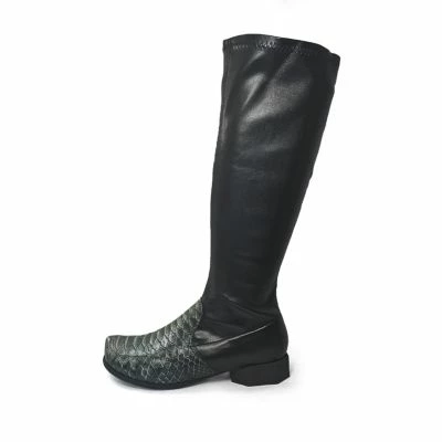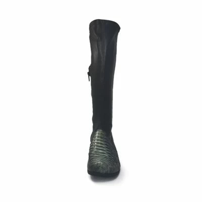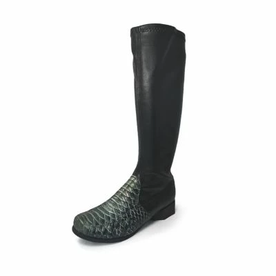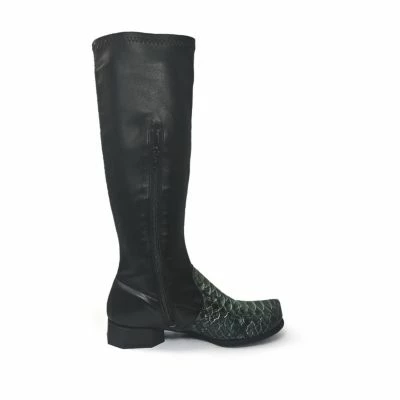 Dieser bequeme Stiefel aus echtem Leder wird durch seine Details abwechslungsreich. Ein achteckiger flacher Lederabsatz ermöglicht immer einen sicheren Tritt. Der innenliegende Reißverschluß ermöglicht einen einfachen Einstieg. Der croco Einsatz verleiht dem Schuh einen extravaganten Anblick.