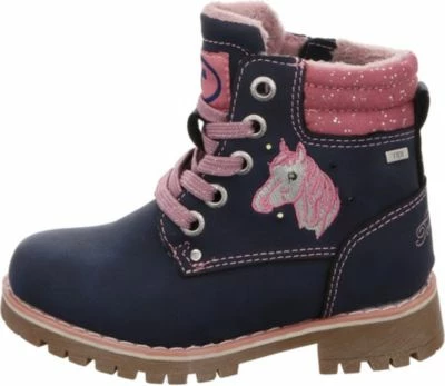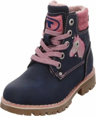 Die Boots von Tom Tailor ziehen mit ihren aufgedruckten Pferdekopf alle Blicke auf sich. Die Schnürsenkel mit Glitzer und die modische Profilsohle runden den Look perfekt ab. Das kuschelige Innenfutter und die atmungsaktive Tex-Membran sorgen für warme und trockene Füße bei jedem Wetter. Ein rundum gelungener Schuh, der mit seinem tollen Look Mädchenherzen höher schlagen lässt.