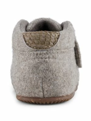 Ein Babyschuh in dezenten Farben mit praktischem Klettverschluss. Die weiche Fersenkappe und die Kombination aus Leder und Filz sorgen auch bei kleinen Füßen für ein atmungsaktives, gesundes Fußklima. Die Einlegesohle bietet eine weiche Unterlage. Sie besteht aus dem charakteristischen WODEN-Kork sowie stoßdämpfendem EVA-Schaum.